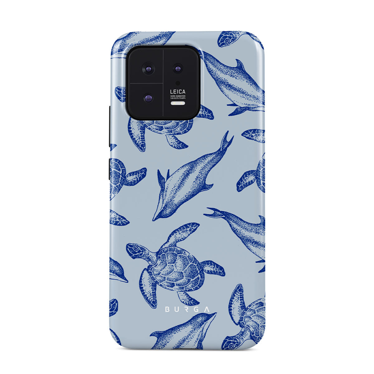 A beautiful design featuring lively turtles and dolphins playfully dancing in serene light blue water. Dive into the ocean's rhythm with our Aquatic Dance Xiaomi 13 case.