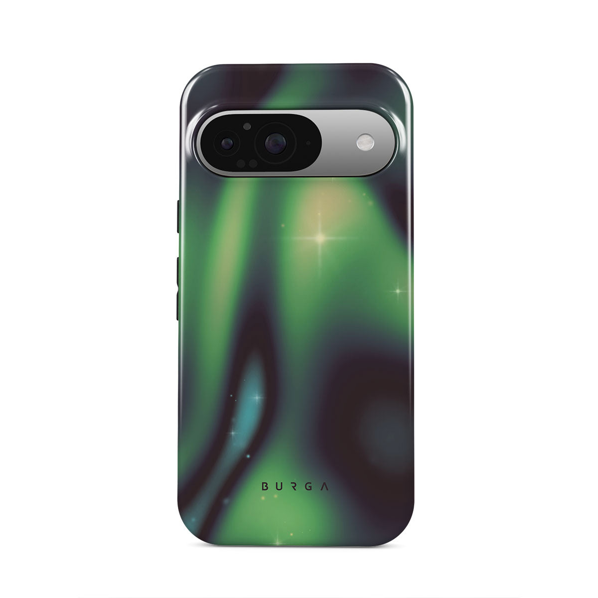 Nature's magic shines through in a mysterious display of lights. Delicate colors intertwine in a ballet of beauty and grace. Poetic harmony is captured with each swirl. It feels as if you're holding a piece of the night sky. Experience the serene grandeur of the Aurora Google Pixel 9 phone case design.