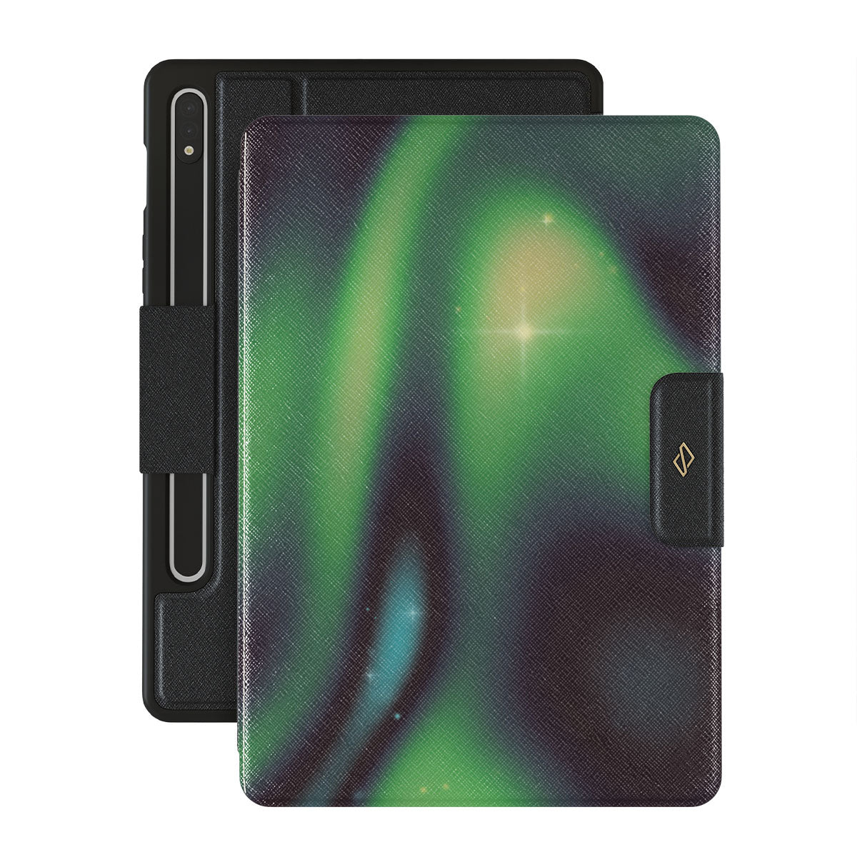 Nature's magic shines through in a mysterious display of lights. Delicate colors intertwine in a ballet of beauty and grace. Poetic harmony is captured with each swirl. It feels as if you're holding a piece of the night sky. Experience the serene grandeur of the Aurora folio case design.