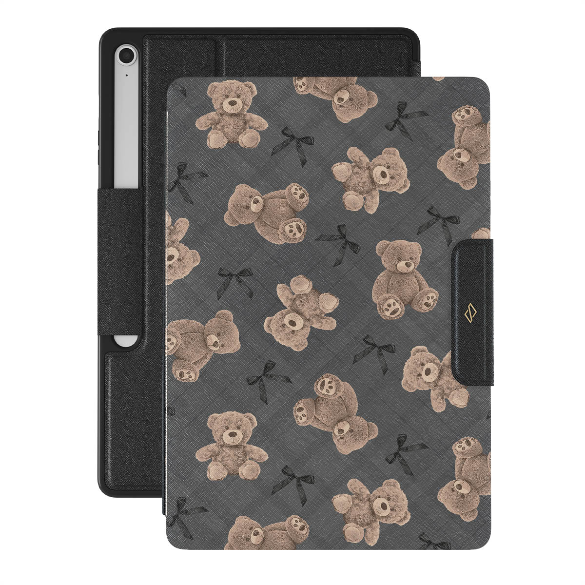 A design blending innocence and sophistication. With teddy bears and a chic gray background, BFF is a throwback to the comforting nostalgia of youth, updated with a touch of modern glam. This design will make you and your Samsung Galaxy Tab S10+ FE folio case inseparable companions, just like the best of friends.