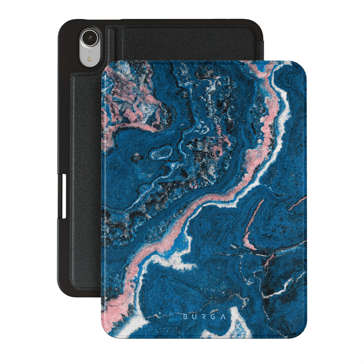 Electric indigo blue meets white, and pastel pink swirls in a unique marble pattern in our Blue Lagoon iPad Mini 8.3 (A17 Pro/6th Gen) 2021 folio case. The modern take on a blue marble trend will look aesthetically pleasing on your device while offering durable protection from any falls.