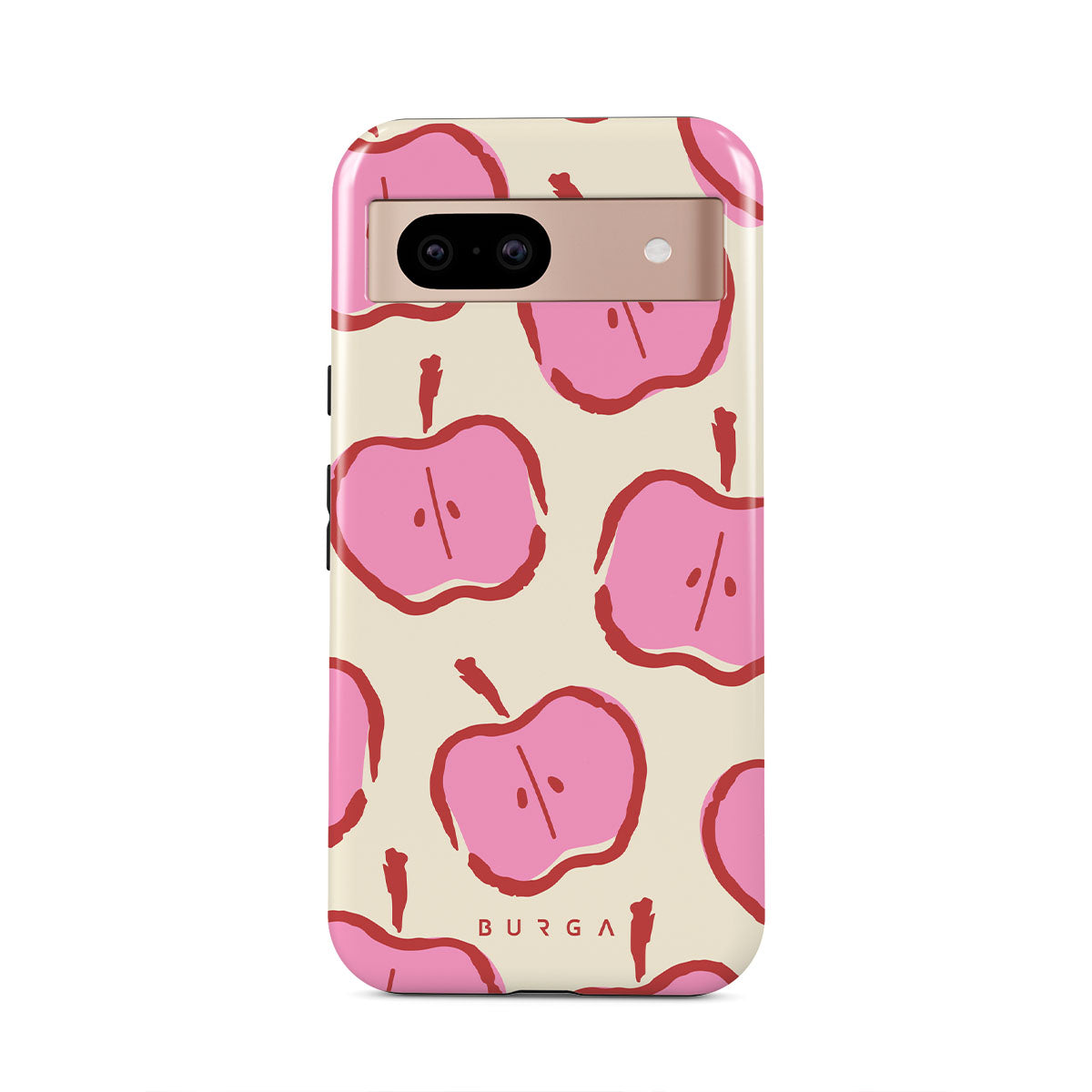 Our Bon Appétit Google Pixel 8a phone case design makes every day feel like a magical adventure filled with sweet surprises. The playful pink hues of the apples stand out brilliantly against the serene cream background, creating a captivating and enchanting visual.