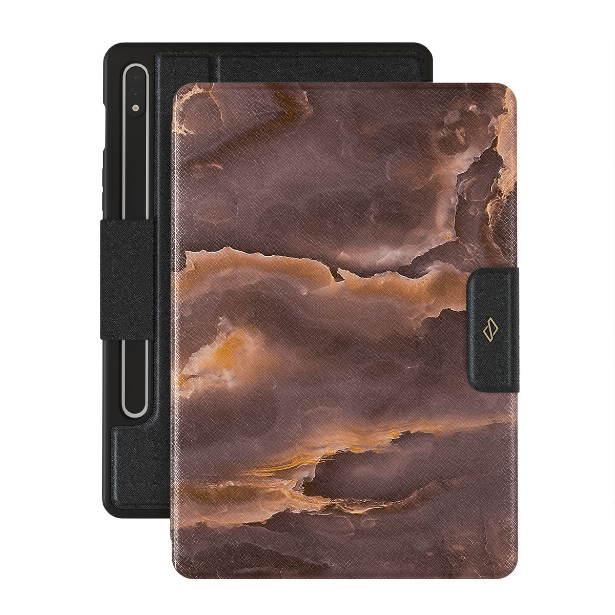 The bonfire starts to flicker – it's time to gather more wood. With a brown marble Samsung Galaxy Tab S8+/S7+/S7 FE folio case design inspired by a bonfire flame, carry a feeling of content and excitement wherever you go. The protective case is needed in a hike, but a stylish accessory will match your aesthetic even on a lazy Sunday.