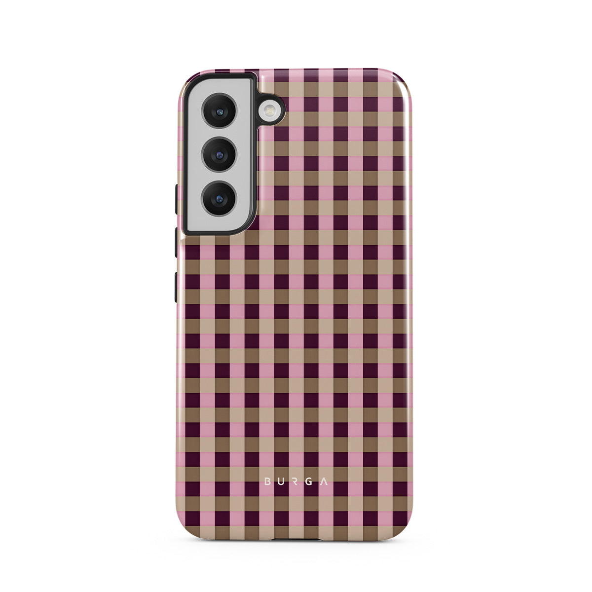This design features: pink and burgundy plaid pattern, modern checkered style.