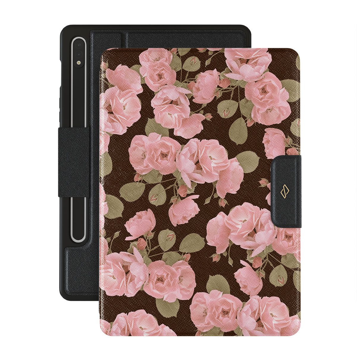 Delicate like a Desert Rose, your style blossoms in unexpected places. This striking Samsung Galaxy Tab S9 FE folio case design features bold pink roses against a rich, earthy background, creating a captivating contrast. Made for those who thrive in the extraordinary and find beauty in the rugged.