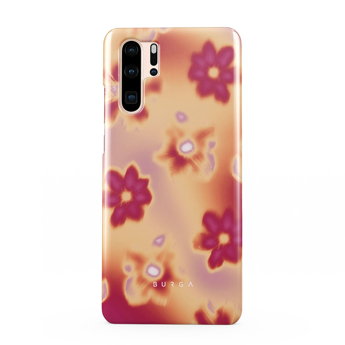 Get lost in the allure of our Divine Huawei P30 Pro phone case design. Picture blossoms bathed in fiery hues of pink and orange, each seemingly charged with life's raw energy. Set against a canvas that radiates power and warmth, these flowers offer more than just beauty; they resonate with the essence that binds us all.