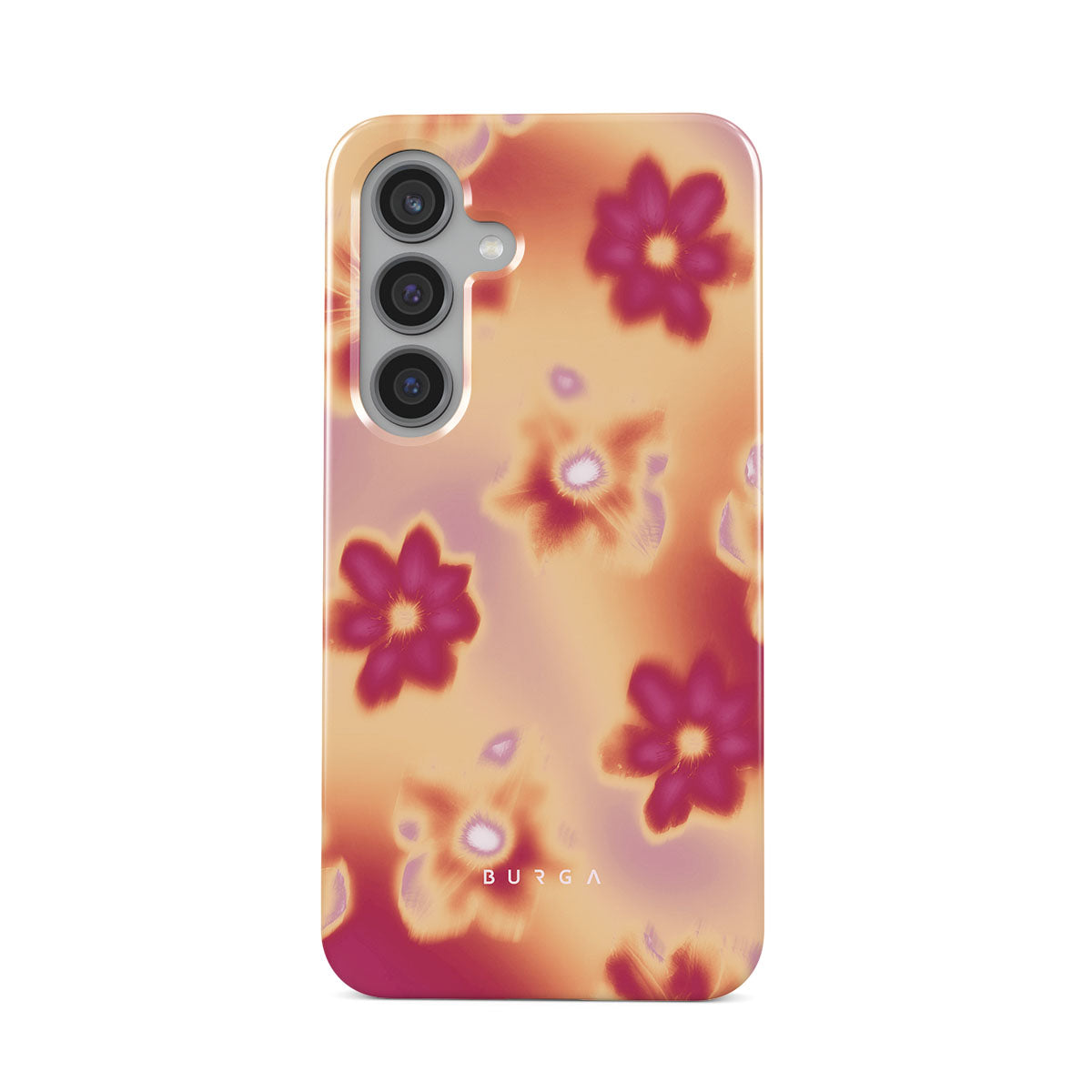 Get lost in the allure of our Divine Samsung Galaxy S24 Plus phone case design. Picture blossoms bathed in fiery hues of pink and orange, each seemingly charged with life's raw energy. Set against a canvas that radiates power and warmth, these flowers offer more than just beauty; they resonate with the essence that binds us all.