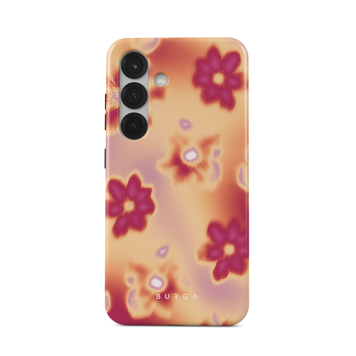 Get lost in the allure of our Divine Samsung Galaxy S25 phone case design. Picture blossoms bathed in fiery hues of pink and orange, each seemingly charged with life's raw energy. Set against a canvas that radiates power and warmth, these flowers offer more than just beauty; they resonate with the essence that binds us all.