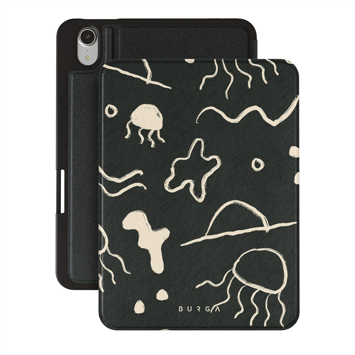 Our Eclipse iPad Mini 8.3 (A17 Pro/6th Gen) 2021 folio case reflects the enigmatic beauty of the ocean during a solar eclipse. The dark hues and bright accents represent how the light dances on the water, while the waves and jellyfish capture the serene yet dynamic nature of the ocean.