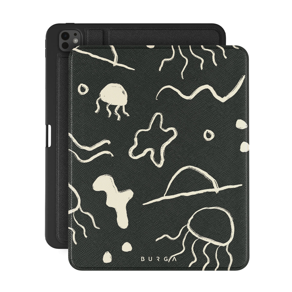 Our Eclipse iPad Pro 13 (8th/7th Gen) folio case reflects the enigmatic beauty of the ocean during a solar eclipse. The dark hues and bright accents represent how the light dances on the water, while the waves and jellyfish capture the serene yet dynamic nature of the ocean.