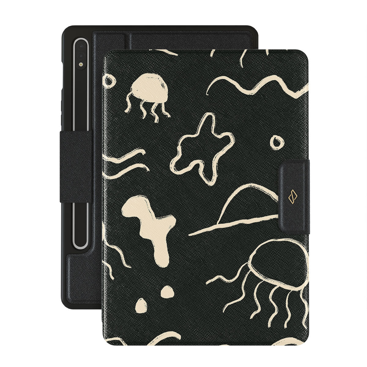 Our Eclipse Samsung Galaxy Tab S9 FE folio case reflects the enigmatic beauty of the ocean during a solar eclipse. The dark hues and bright accents represent how the light dances on the water, while the waves and jellyfish capture the serene yet dynamic nature of the ocean.