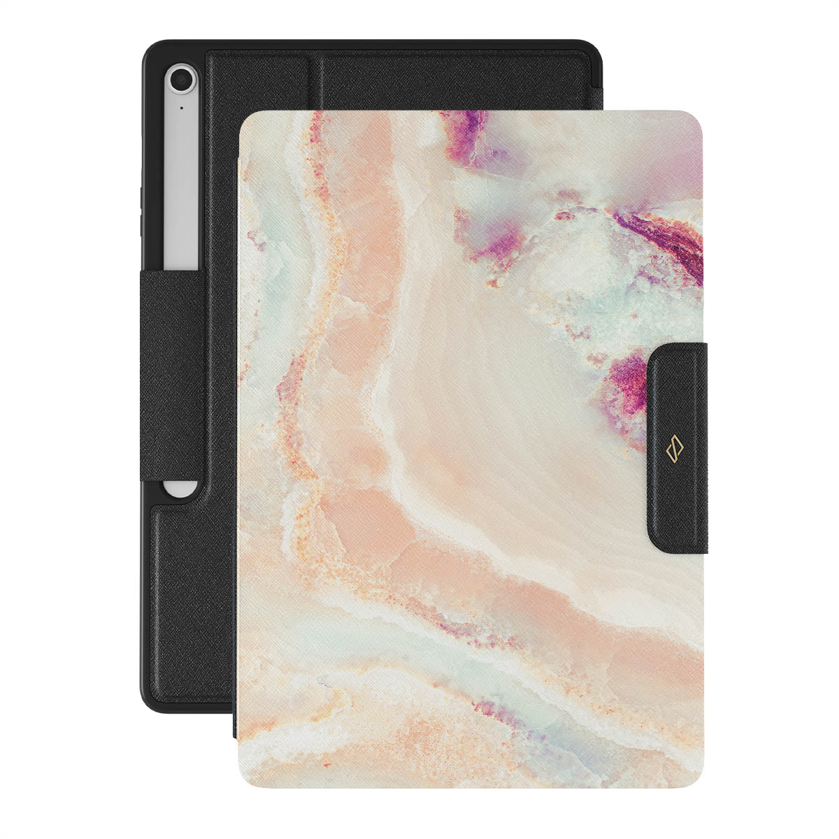 The soft color scheme of coral, pink, blue, and purple of our Berry Sorbet Samsung Galaxy Tab S10+ FE folio case radiates soft girly vibes. The feminine touch is felt throughout the design, making it an excellent choice to add to the springtime wardrobe and protect your Galaxy Tab from scratches and falls.