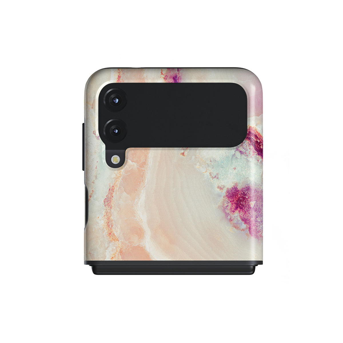 The soft color scheme of coral, pink, blue, and purple of our Berry Sorbet Samsung Galaxy Z Flip 3 phone case radiates soft girly vibes. The feminine touch is felt throughout the design, making it an excellent choice to add to the springtime wardrobe and protect your phone from scratches and falls.