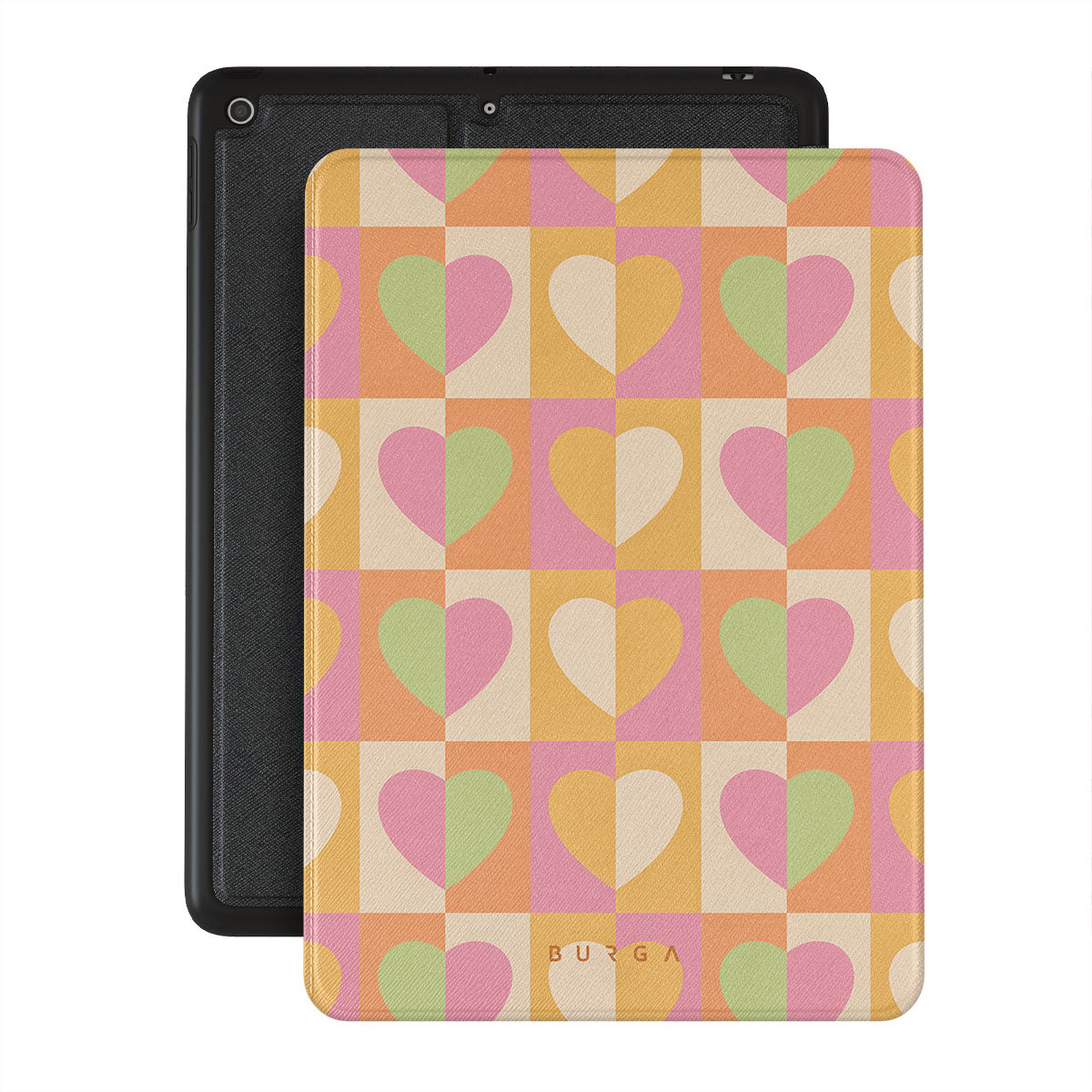 Beautifully geometrical and lovable Summer Love {iPad Model} iPad 10.2 (9th/8th/7th Gen) folio case combines a soft pastel color scheme with a playful square heart pattern. Adding a touch of love to your style was never easier! Keep your iPad as safe as you keep your heart in a cheeky checkered protective iPad case!