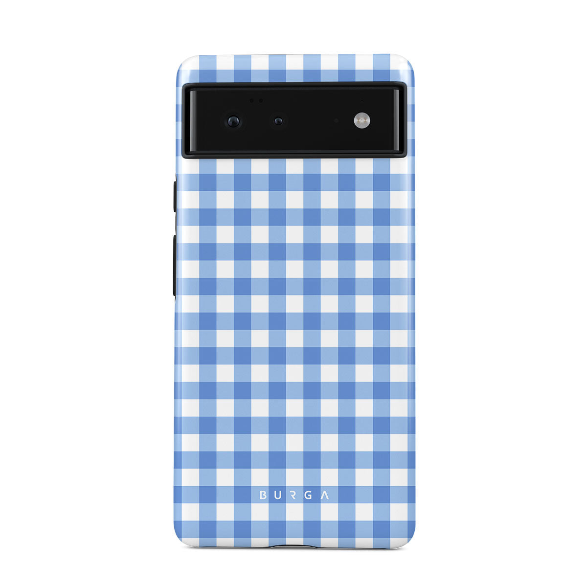 Crisp blue checks are your invitation to lay on the grass, look up at the sky, and find shapes in the clouds—simple joys that make any day lovely. That’s our Lovely Day Google Pixel 6a phone case design.