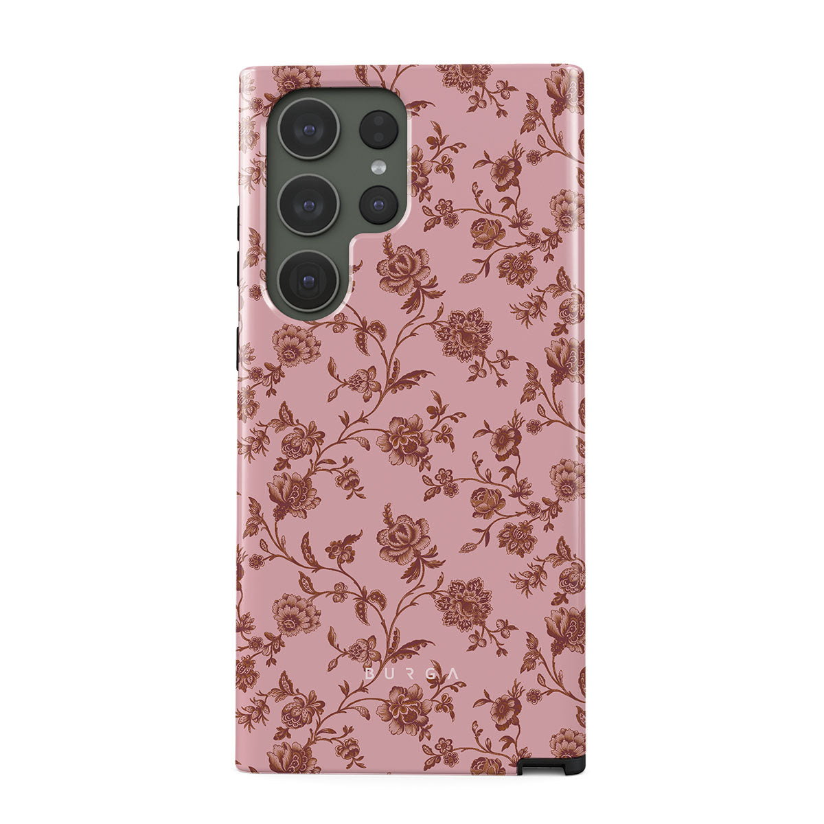 The Lover Samsung Galaxy S23 Ultra phone case design: because you're a Lover, not a fighter. Delicate floral motifs across a soft pink background capture the essence of timeless beauty and rustic elegance. Perfect for modern-day cowgirls with a vintage heart.