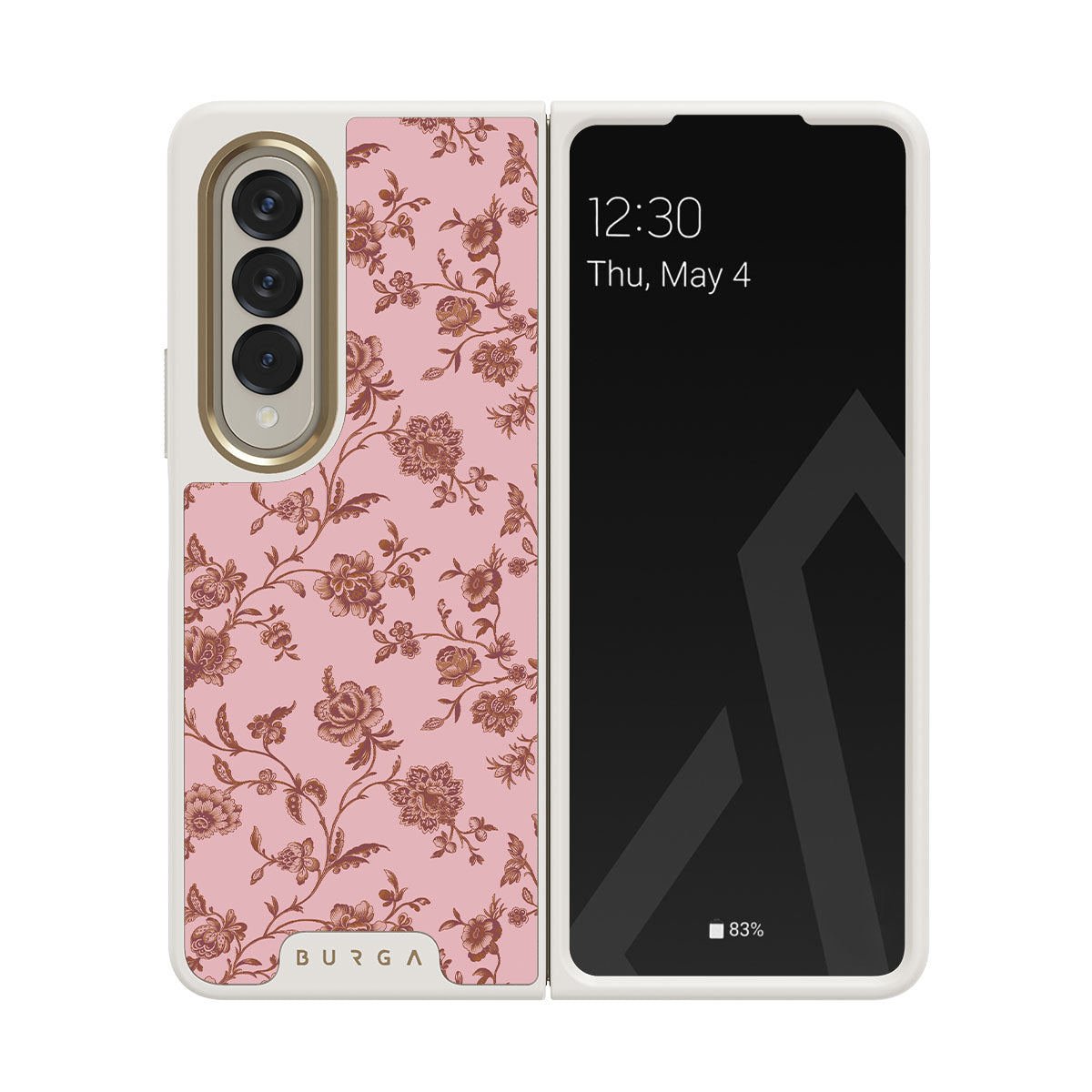 The Lover Samsung Galaxy Z Fold 4 phone case design: because you're a Lover, not a fighter. Delicate floral motifs across a soft pink background capture the essence of timeless beauty and rustic elegance. Perfect for modern-day cowgirls with a vintage heart.