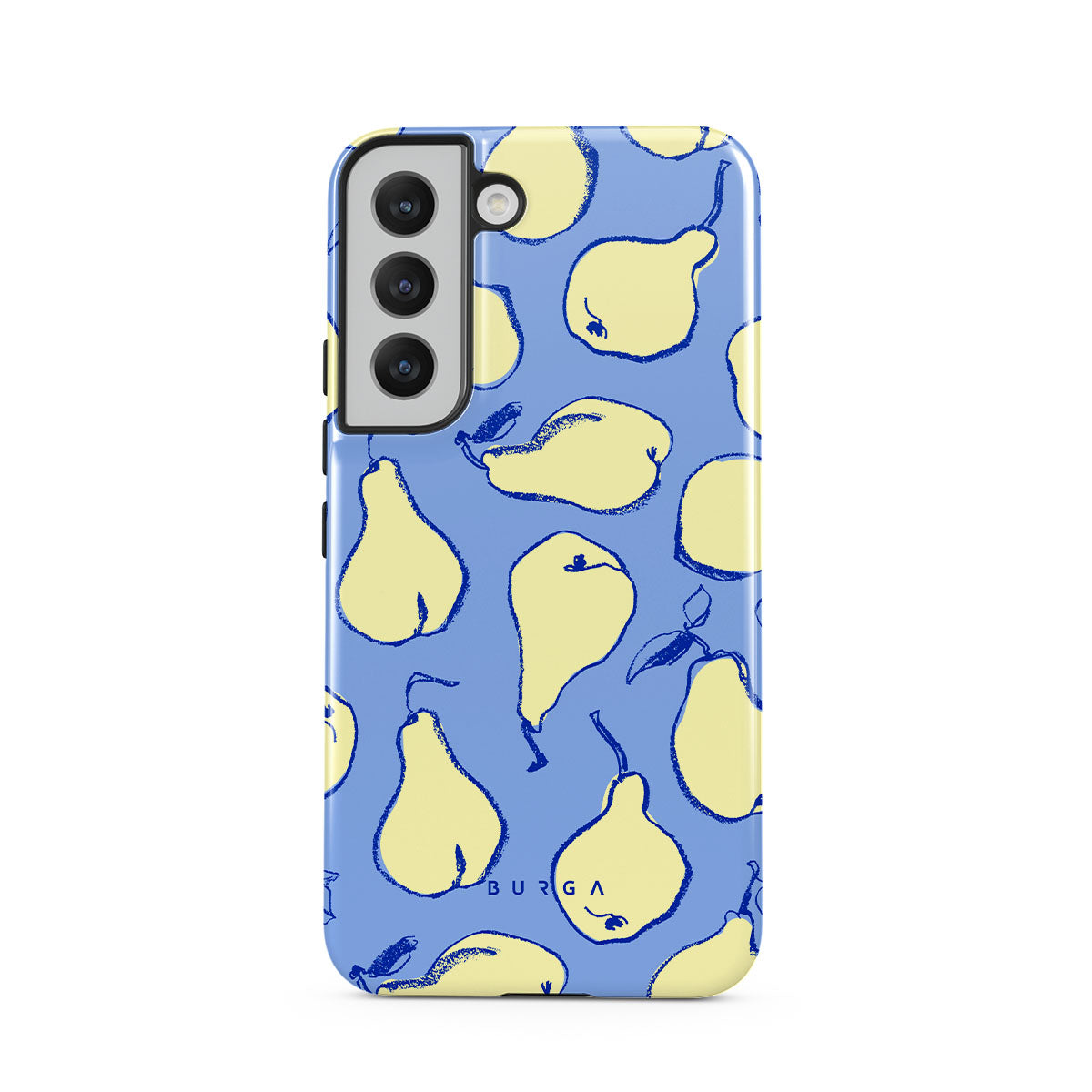Step into a playful paradise with Pear Crush. Each pear is outlined with a lively, hand-drawn charm. This design brings a playful vibe to your Samsung Galaxy S22 phone case, perfect for those who love to embrace the lighter, more joyful side of life.