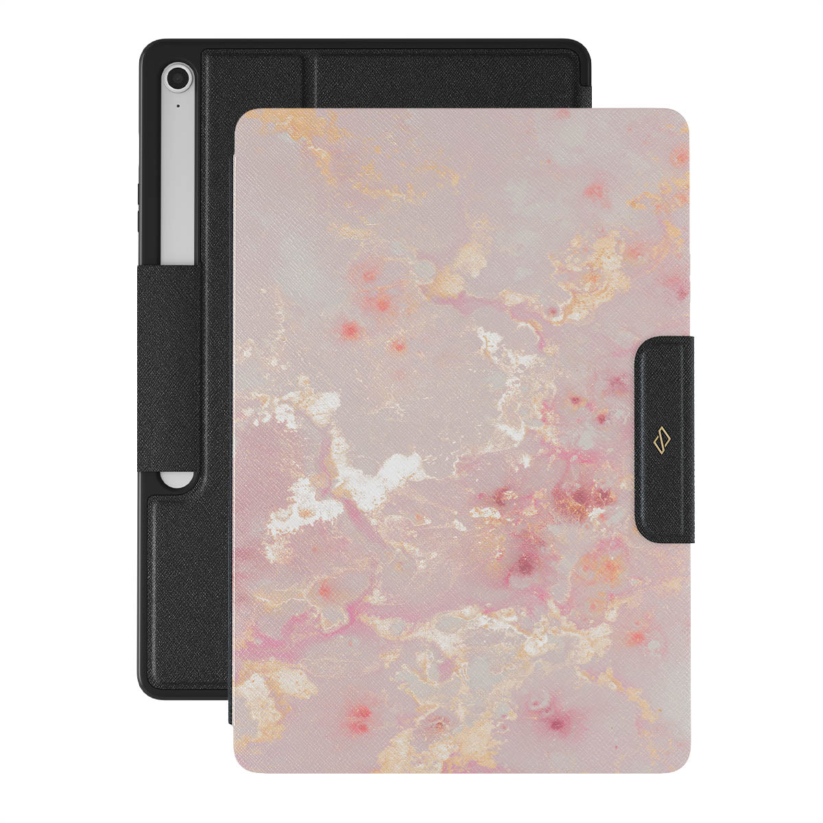 The sun is shining and creates a golden reflection in the corals. Take this scenery with yourself with our pretty and pink Golden Coral Samsung Galaxy Tab S10+ FE folio case. Add protection to your Galaxy Tab with a unique pink marble pattern that is guaranteed to catch everyone's eye.