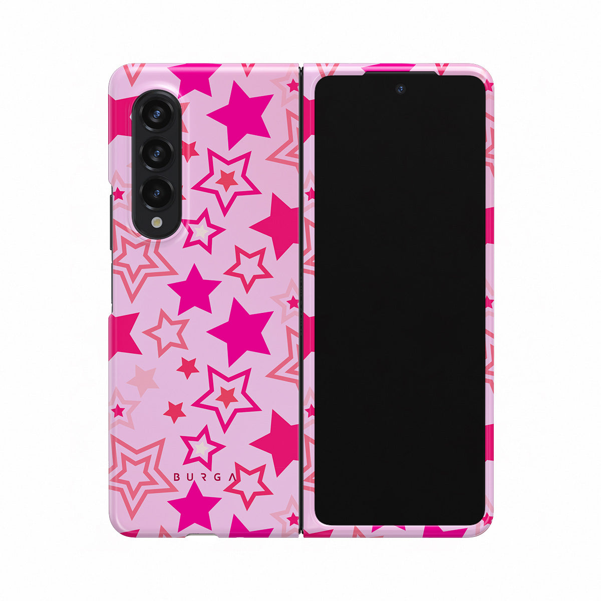 Buckle up for a starry ride, and let's twirl under the Plastic Sky. Neon stars shimmering across a cheeky rose-tinted galaxy create a playful space-disco atmosphere. Be the center of the universe with our Plastic Sky Samsung Galaxy Z Fold 3 phone case!