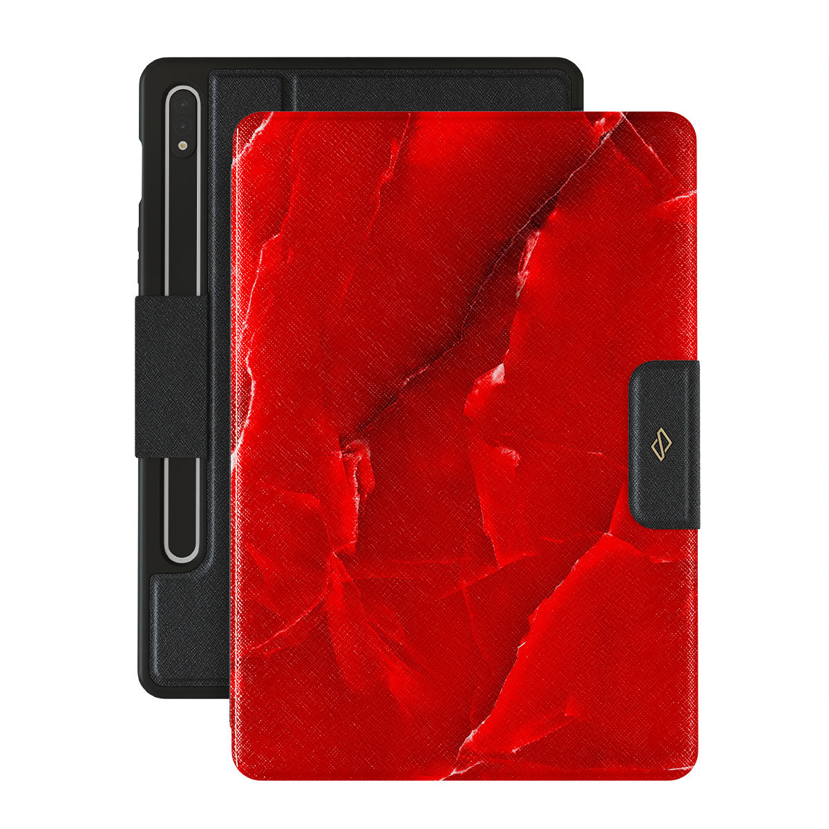 Be as bright as the red fire that cannot be tamed. The Wild Blaze Samsung Galaxy Tab S9+ folio case features a striking bright red marble design that is guaranteed to add fierceness and a pop of color to your beloved device.
