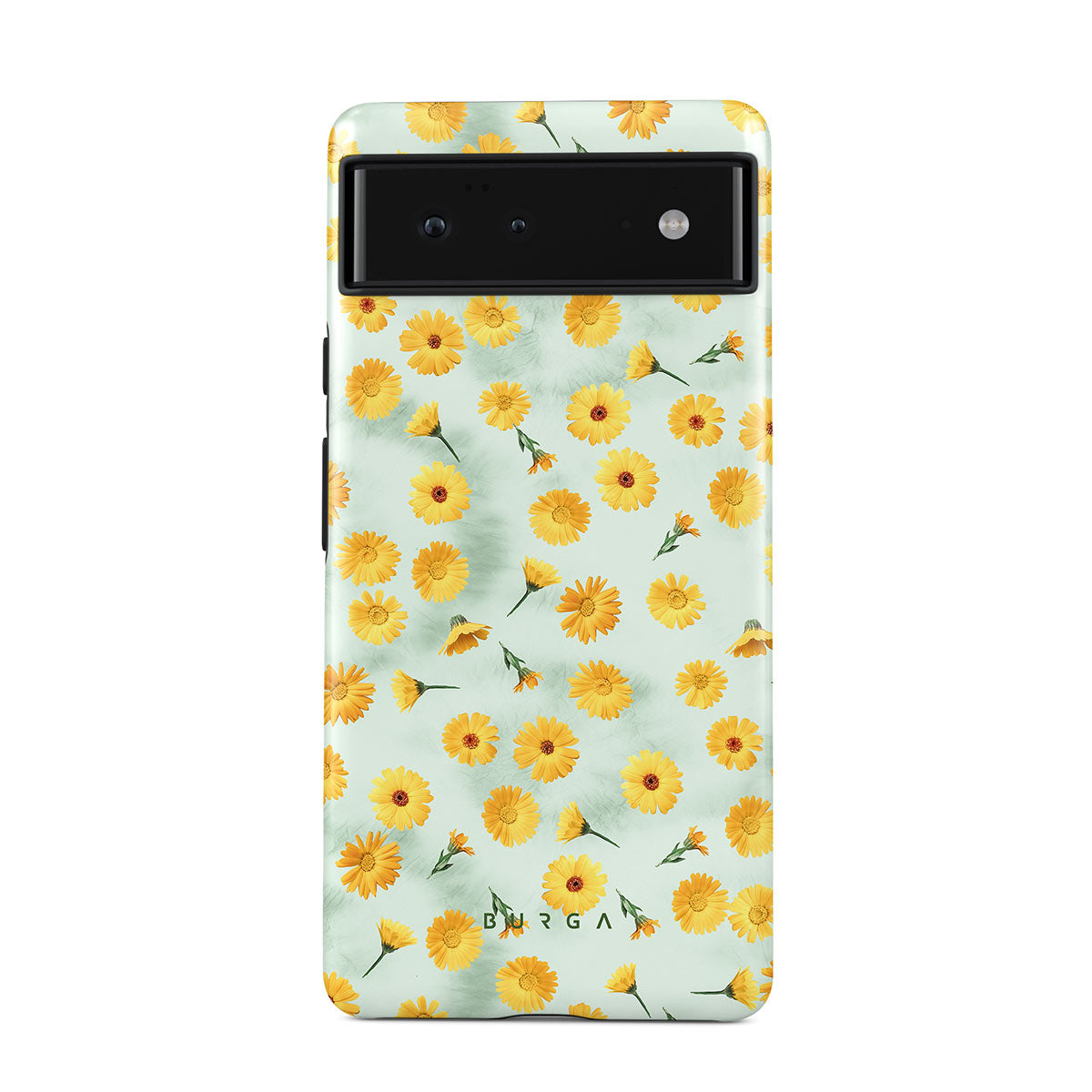 In our Sanctuary of Love Samsung Galaxy S22 phone case, a soft mint marble meets a glowing pattern of yellow flowers that will surely add a splash of energy to your style while protecting your phone from dangerous falls.