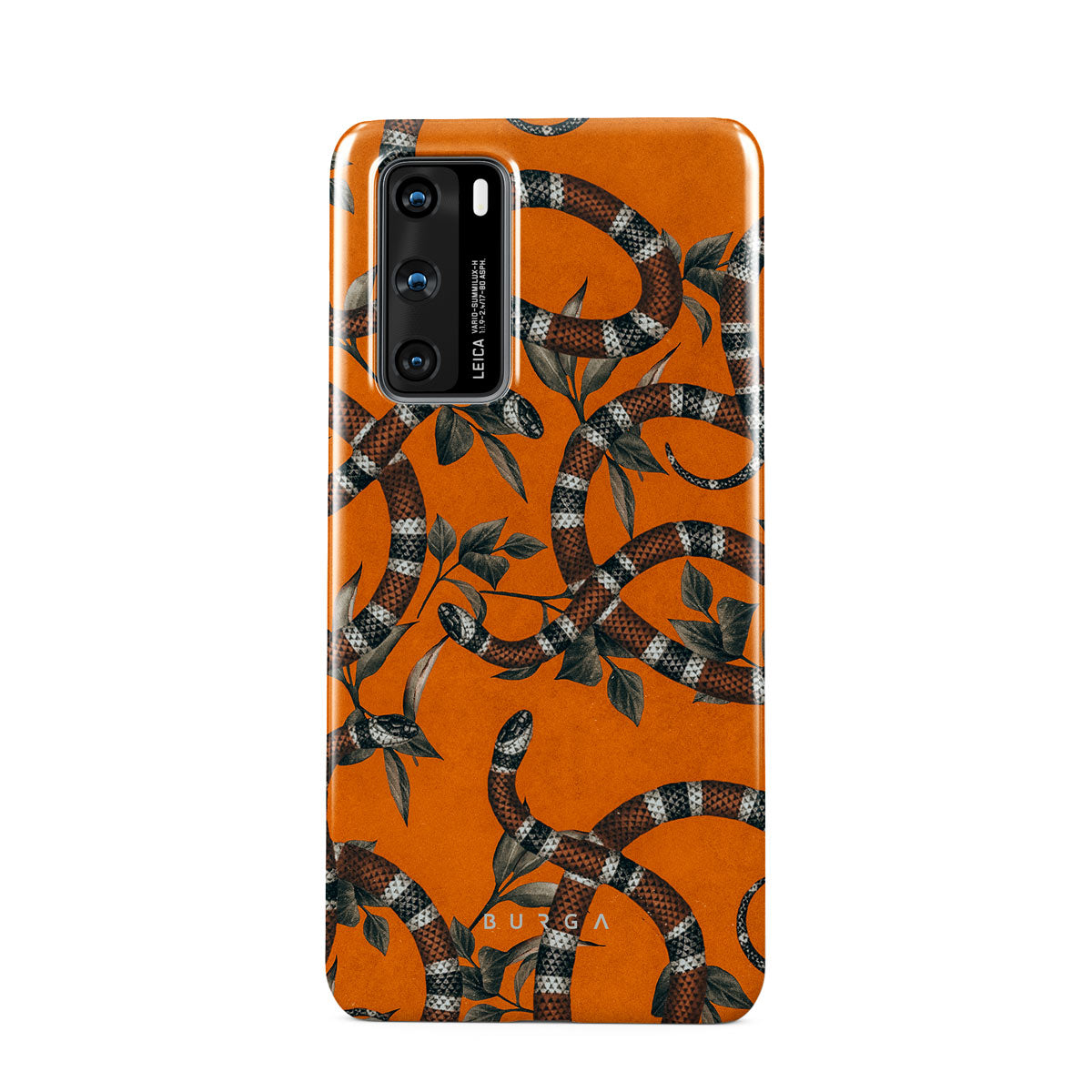Take a bit of fierceness with yourself with our bright orange and dangerously beautiful Huawei P40 phone case with a snake pattern. This case is real eye candy for fashion lovers and just as needed for those who strive to keep their phones protected.