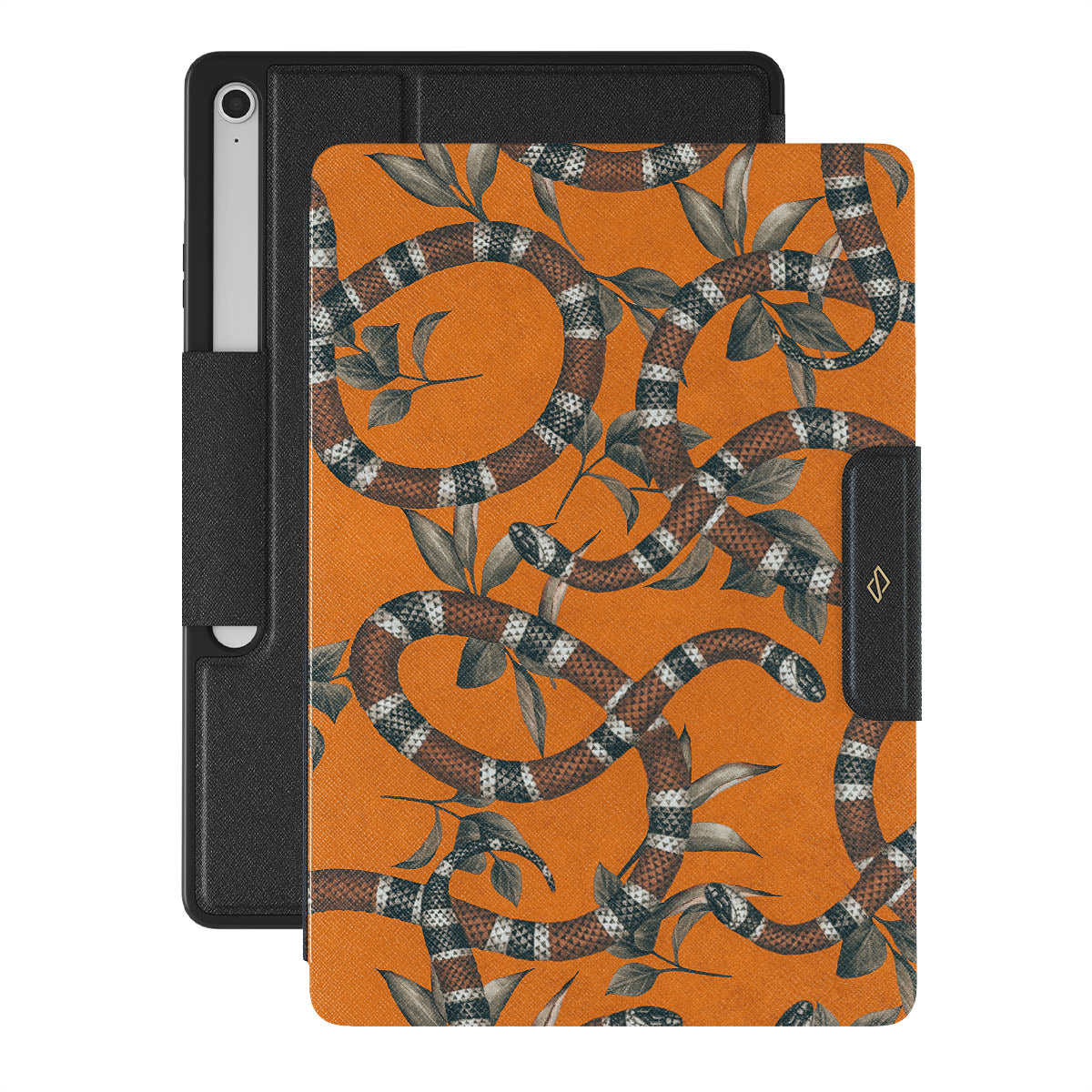 Take a bit of fierceness with yourself with our bright orange and dangerously beautiful Samsung Galaxy Tab S10+ FE folio case with a snake pattern. This case is real eye candy for fashion lovers and just as needed for those who strive to keep their Galaxy Tabs protected.