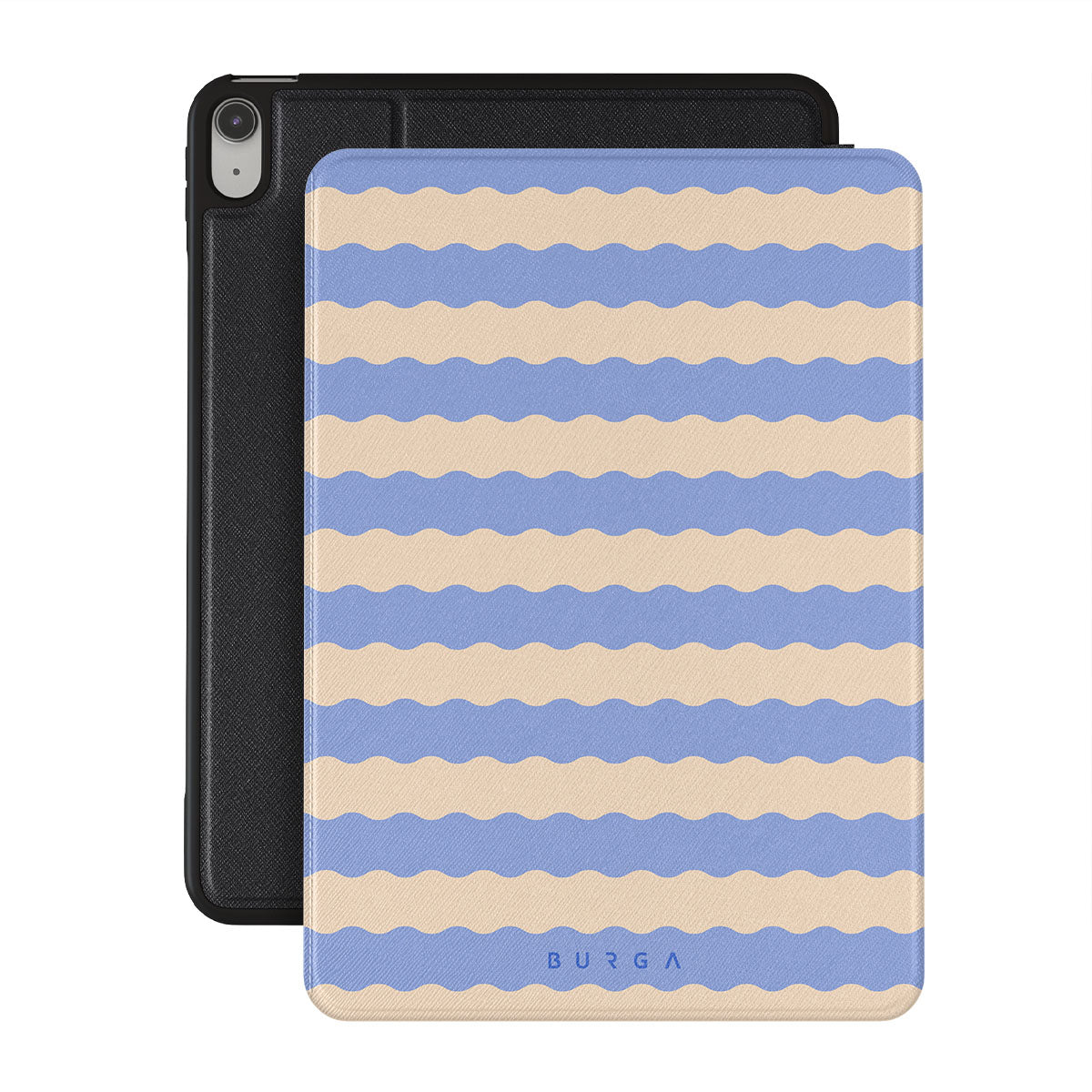 Dive into the cool, refreshing style of our Splash design–a dynamic iPad 10.9 (A16/10th Gen) folio case featuring playful, wavy stripes of serene ocean blue and soft sandy beige. Perfect for those who love to make a splash with their accessories.