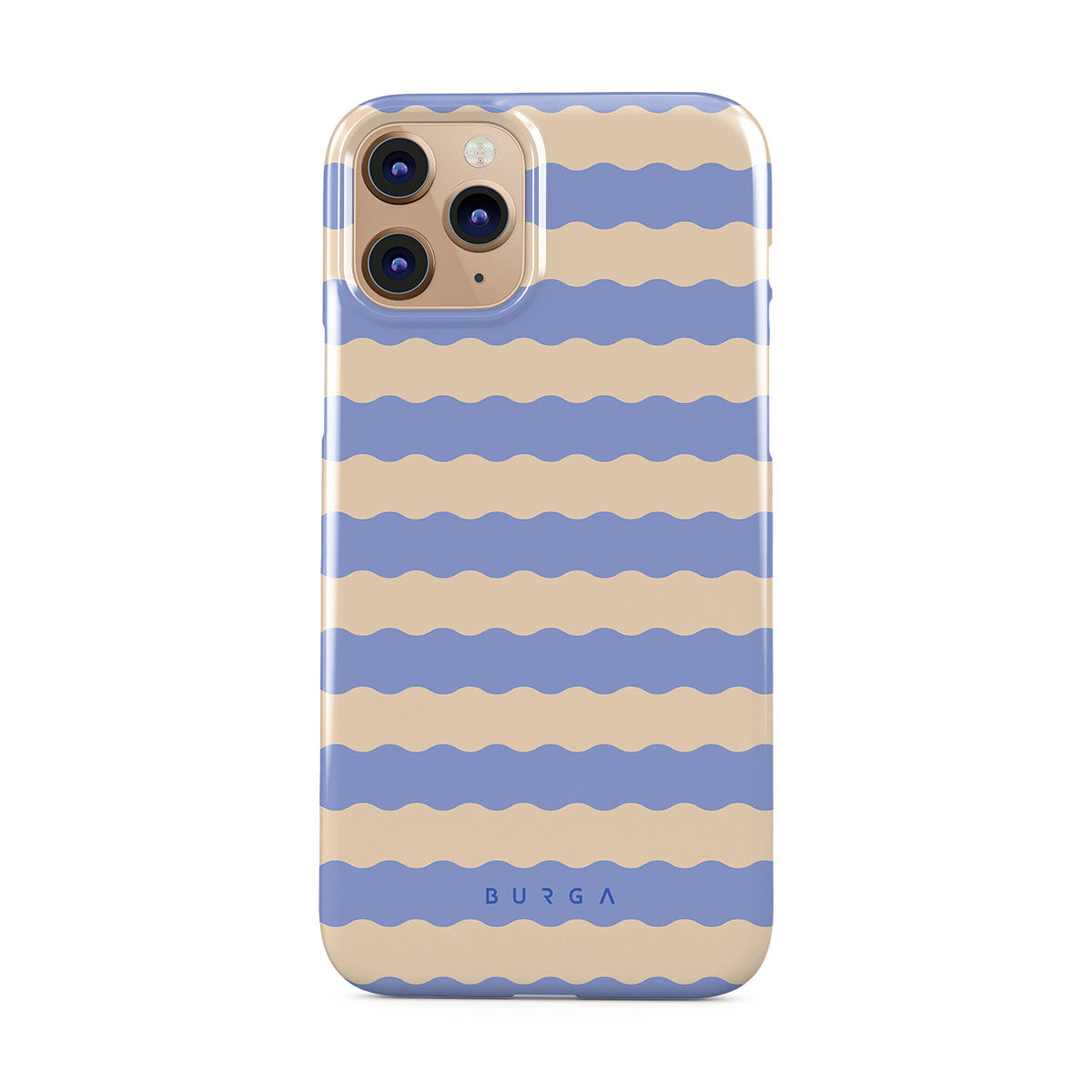 Dive into the cool, refreshing style of our Splash design–a dynamic iPhone 11 Pro phone case featuring playful, wavy stripes of serene ocean blue and soft sandy beige. Perfect for those who love to make a splash with their accessories.