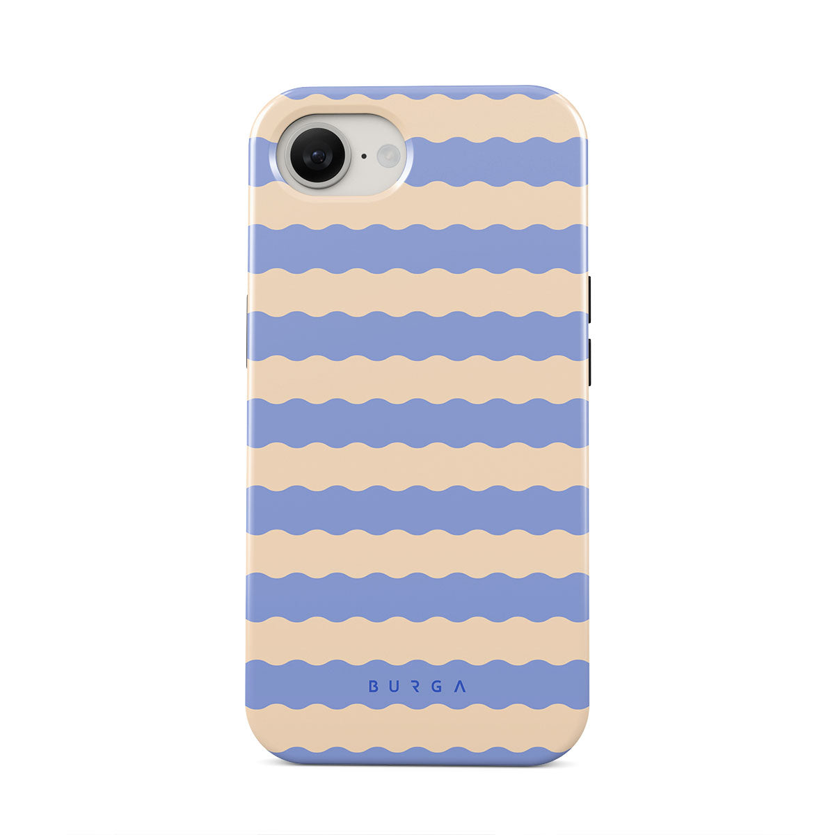 Dive into the cool, refreshing style of our Splash design–a dynamic iPhone 16e phone case featuring playful, wavy stripes of serene ocean blue and soft sandy beige. Perfect for those who love to make a splash with their accessories.