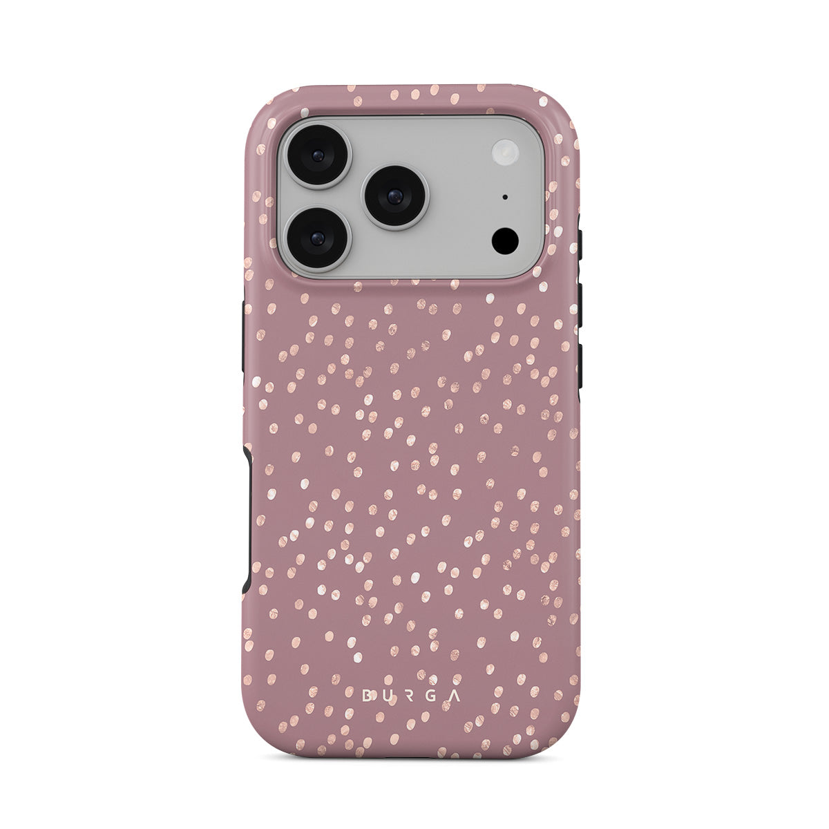 Trendy mauve color as a background for the gold-colored spots creates true beauty. Make your iPhone 17 Pro stand out with our protective and pretty Hot Cocoa phone case. The spotted pattern adds a touch of luxury to your phone, while the case's hard-shell nature offers much-needed protection.