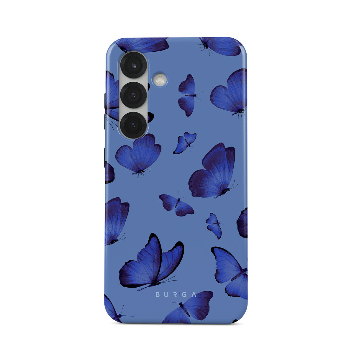Bright blue butterflies dance across a sky-blue expanse, a visual representation of freedom and transformation. Our Spring Court Samsung Galaxy S25 Plus phone case design symbolizes the soul's eternal dance with change, each flutter a step towards becoming who we are meant to be.
