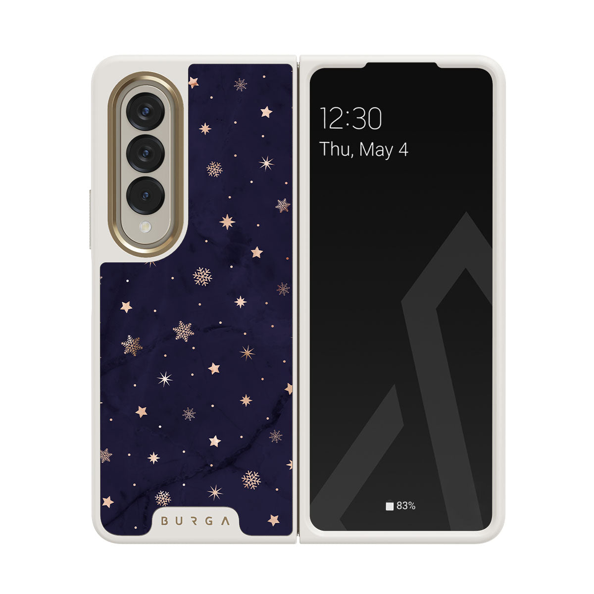 With a dreamy combination of dark blue and golden colors in the pretty star pattern found in our Midnight Kiss Samsung Galaxy Z Fold 4 phone case, you can protect your phone and add a magical feel to it just in one go.