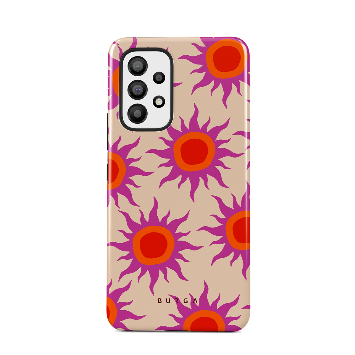 Discover the radiant serenity of the Sunset Glow design, a harmonious blend of soothing pastels and fiery suns. Vivacious viva magenta rays add a playful touch, perfectly balancing tranquility and dynamism. More than just a fashion accessory, this striking Samsung Galaxy A33 phone case mirrors your unique personality and zest for life.