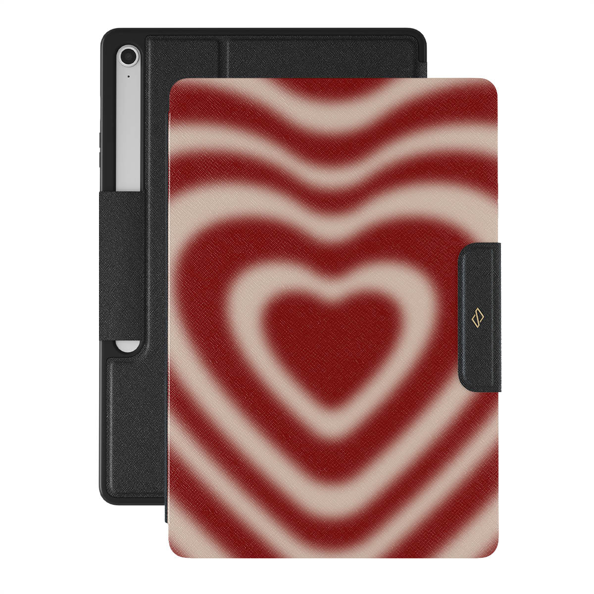 A hypnotic swirl, where deep shades of red dance together to form an iconic heart. Our Sweet Affair Samsung Galaxy Tab S10+ FE folio case design merges passion with elegance, making it an evergreen choice for those who love without bounds.