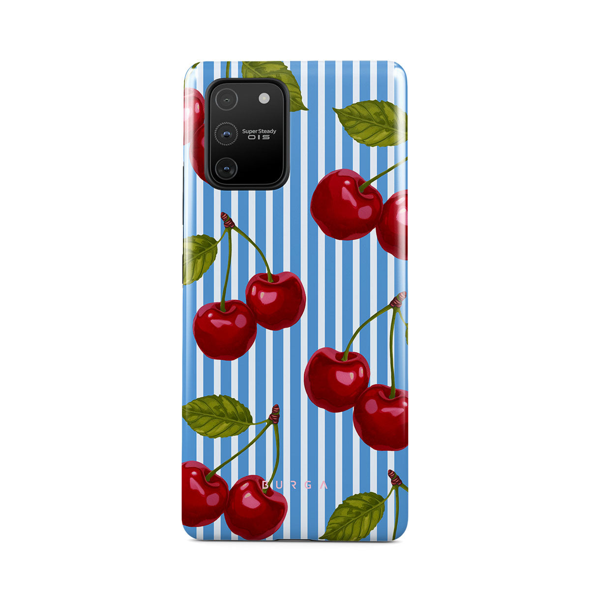 Cherries dangle like earrings from blue skies, a fun reminder of that first bite of summer, juicy and bursting with laughter. Meet our Sweet Moment Samsung Galaxy S10 Lite phone case design.