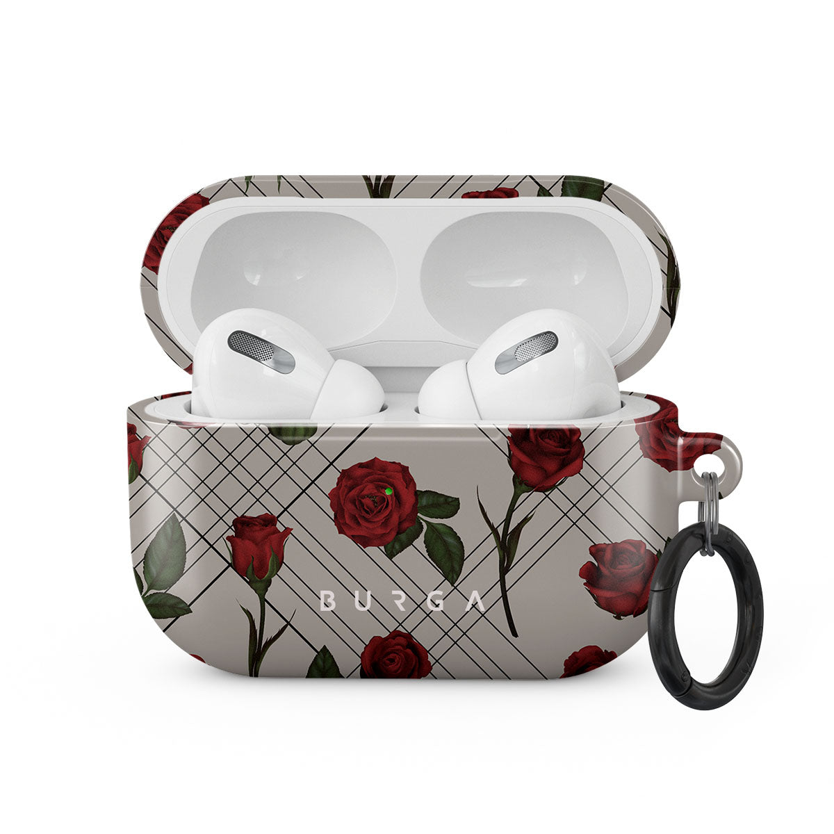 Embrace the subtle rebellion of our Sweet Sin Apple Airpods Pro case cover design. On a muted nude-gray canvas, scattered small red roses hint at passions hidden beneath the surface. A design that balances the delicate with the daring. Crafted for those who find beauty in the unexpected and wear their edge with elegance.