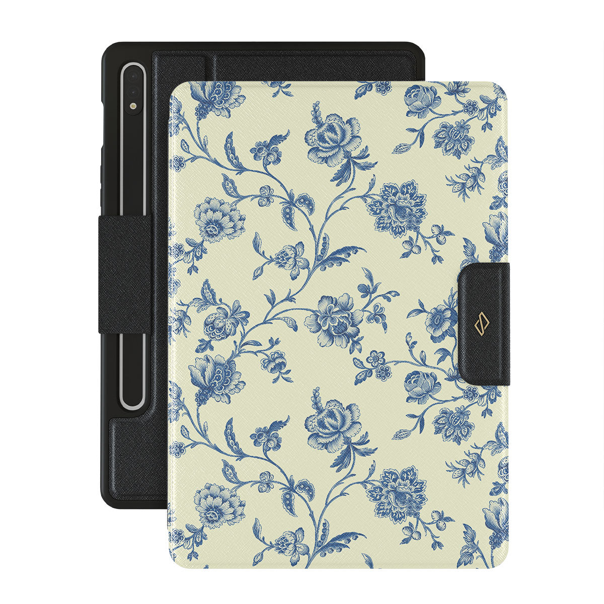Hey, Sweetheart, here's a style secret: vintage blue flowers for that old-school charm. This Samsung Galaxy Tab S9+ folio case design is perfect when you want to be sweet yet effortlessly cool.