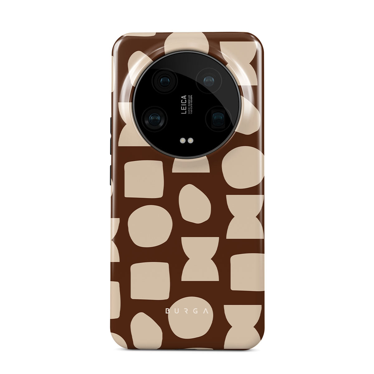 Our Terracotta Xiaomi 14 Ultra phone case design whispers warmth and grounded energy. Against a rich brown background, an interplay of light shapes unfolds, captivating the eye with an array of circles, squares, and hourglasses. Each shape is a testament to the beauty found in simplicity.