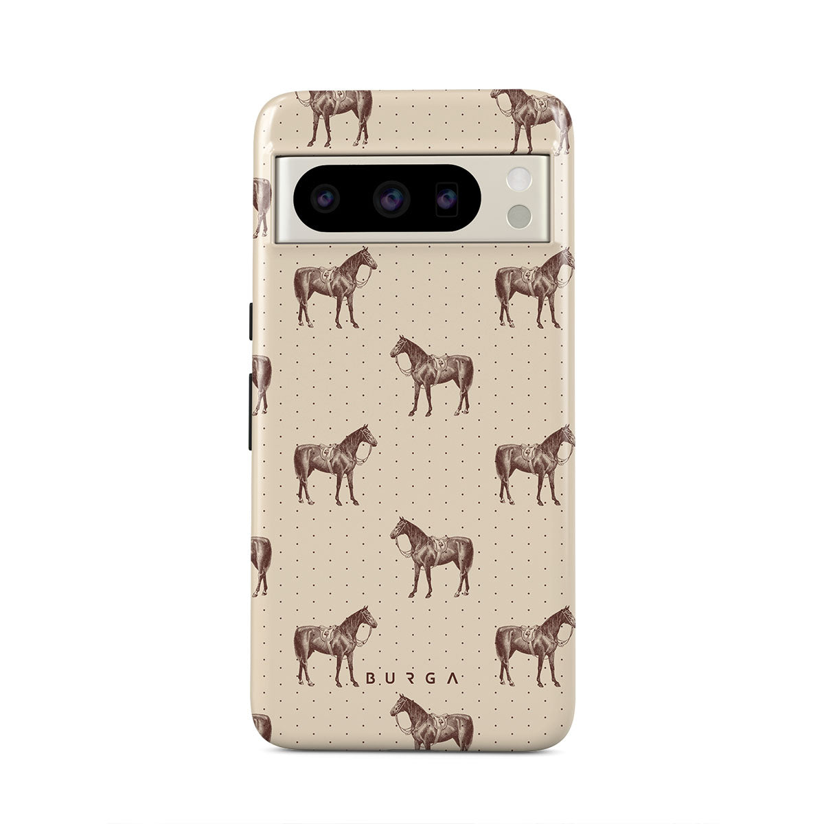 Life might feel like the Wild West sometimes, but your look can still be on point. With beautiful horses on a classic nude background, this Google Pixel 8 Pro phone case design is the one for those who ride free and stylish.