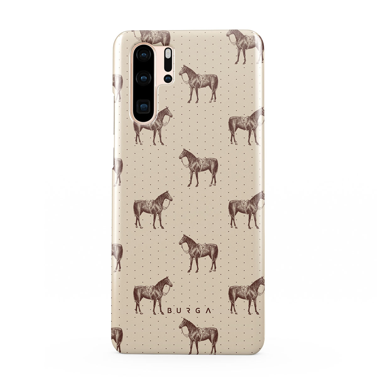Life might feel like the Wild West sometimes, but your look can still be on point. With beautiful horses on a classic nude background, this Huawei P30 Pro phone case design is the one for those who ride free and stylish.